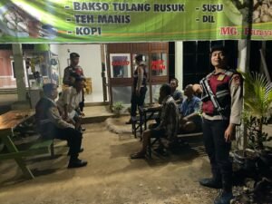 Dalam aksinya, personel juga menjumpai warga yang sedang berkumpul memberikan himbauan Kamtibmas.