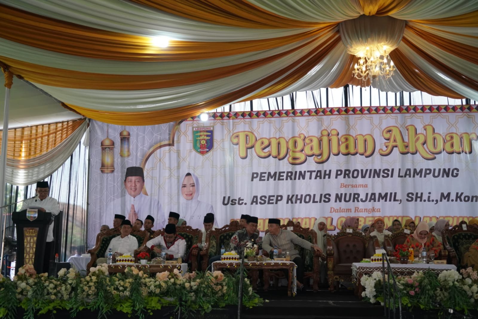 Gubernur Lampung Arinal Djunaidi, Kegitaan Halal Bi Halal dan Pengajian Akbar hari ini adalah salah satu kegiatan yang merupakan momentum untuk mempererat tali silaturrahmi bagi kita semua dan juga menjadi wadah peningkatan keimanan dan ketakwaan kita kepada allah SWT, Saya sebagai gubernur lampung selalu mengayomi seluruh kabupaten kota yang ada di provinsi lampung.
