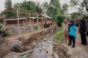 Walikota Bandar Lampung Eva Dwiana memantau sejumlah aliran sungai yang meluap saat bencana banjir 17 Januari 2025 lalu. Senin 27 Januari 2025, Eva Dwiana bersama rombongan memantau aliran sungai di Kecamatan Teluk Betung Timur dan Kecamatan Sukabumi.